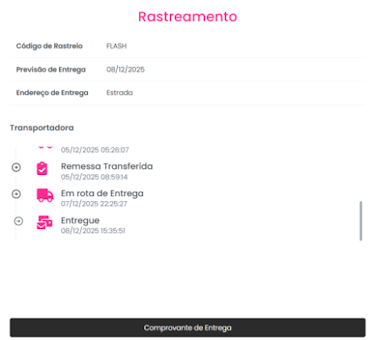 1º PASSO: Acesse > Aplicativo Flash - Página Inicial > Cartões > Clicar sobre Novo Cartão Solicitado > Acompanhar entrega > Siga para a tela seguinte e clique em > Comprovante de Entrega.