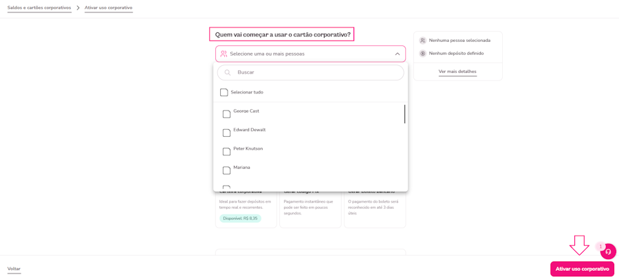 Selecione os colaboradores que terão acesso ao cartão;