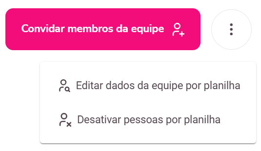 2. Clique nos três pontinhos ao lado do botão 'Convidar membros da equipe' e selecione a opção Editar dados da equipe por planilha;