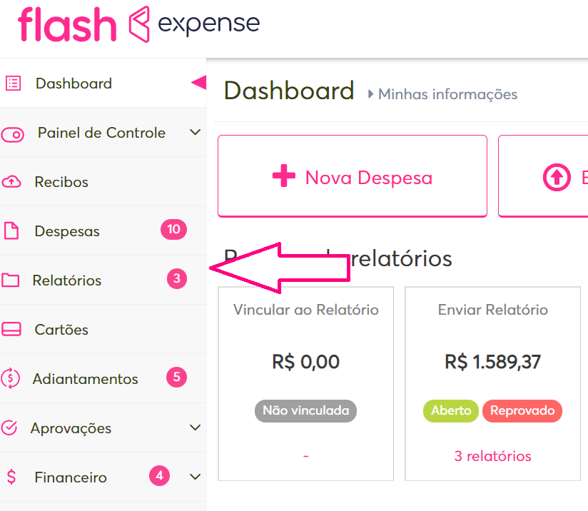 1. Abra o menu lateral e vá até a sessão "Relatórios":