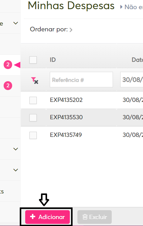1. Abra o menu lateral e vá até a seção "Despesas":