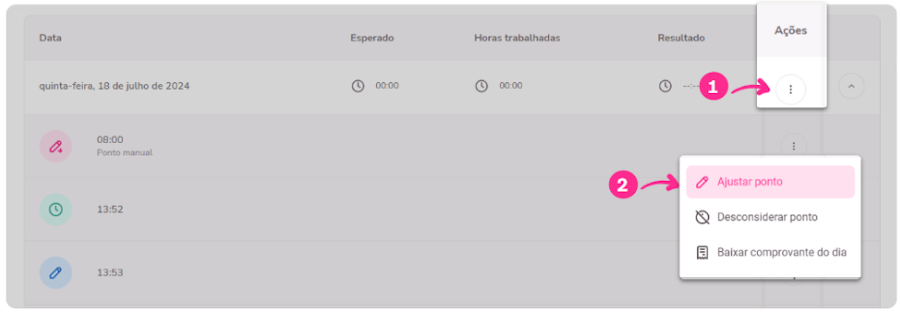 Para ajustar uma marcação na plataforma nova de Controle de Jornada: