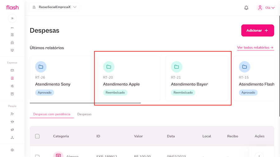 Neste momento, o relatório passará para o status “Reembolsado” e o colaborador saberá que o pagamento foi efetuado.