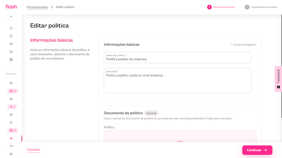 Selecione “Continuar” caso não sejam necessários ajustes nos dados de identificação da política.