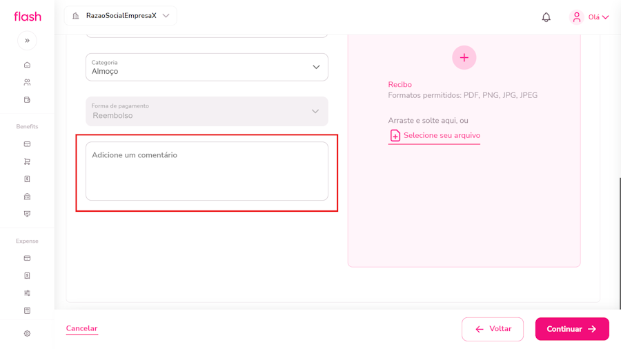 O colaborador não preencheu alguma informação obrigatória no formulário de despesa, como a inserção do recibo ou o preenchimento da categoria.