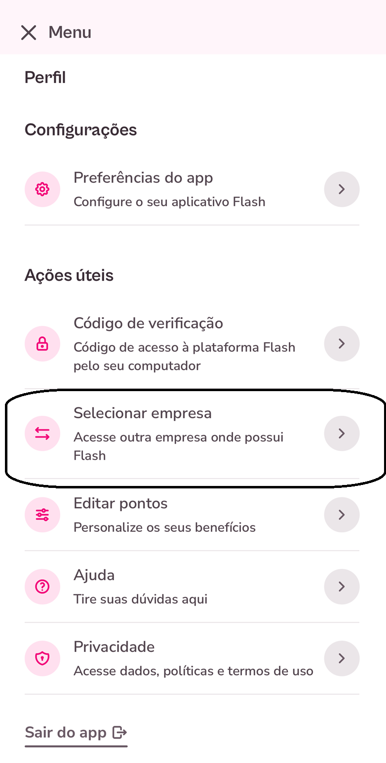Recebo Flash por mais de uma empresa, como alterar o acesso no app?